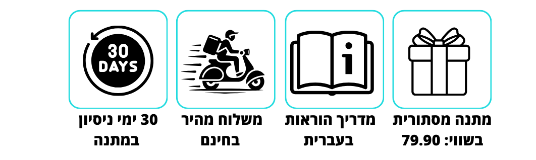 לא אהבתם את המוצר ב - 30 ימים הראשונים? פנו אלינו וקבלו החזר כספי! (בהתאם למדיניות שלנו)